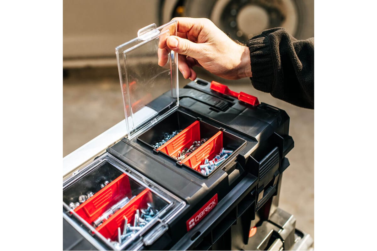 Ящик для инструмента QBRICK SYSTEM Pro 500 Expert 45х26х24 см (5901238250012) – самый маленький представитель нового поколения профессиональных ящиков для инструментов. Линейку Pro отличает уникальная в своем классе функция соединения двух коробок друг с другом с помощью полиамидных соединителей и гибкого уплотнения, обеспечивающего полную защиту от проникновения воды и пыли. Органайзер Expert, расположенный в крышке ящика, благодаря регулируемым перегородкам позволит организовать как мелкие, так и длинные аксессуары для мастерской. Прочная алюминиевая ручка, застежки и боковые разъемы из полиамида, а также полка органайзера из поликарбоната – гарантия многолетней бесперебойной работы.