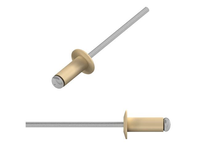 Заклепка вытяжная алюминий-сталь RAL 1014 STARFIX применяется для создания неразъемных соединений. Особенно подходит для крепления тонких листовых материалов между собой или к несущей конструкции. Тело заклепки изготовлено из алюминия, сердечник – из стали. Алюминиевая часть заклепки окрашена в цвет RAL. Для монтажа необходим заклепочный пистолет. Рекомендуется просверливать отверстие под заклепку на 0,1 – 0,2 мм больше, чем диаметр заклепки.
