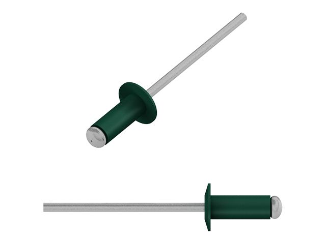 Заклепка вытяжная алюминий-сталь RAL 6005 STARFIX применяется для создания неразъемных соединений. Особенно подходит для крепления тонких листовых материалов между собой или к несущей конструкции. Тело заклепки изготовлено из алюминия, сердечник – из стали. Алюминиевая часть заклепки окрашена в цвет RAL. Для монтажа необходим заклепочный пистолет. Рекомендуется просверливать отверстие под заклепку на 0,1 – 0,2 мм больше, чем диаметр заклепки.
