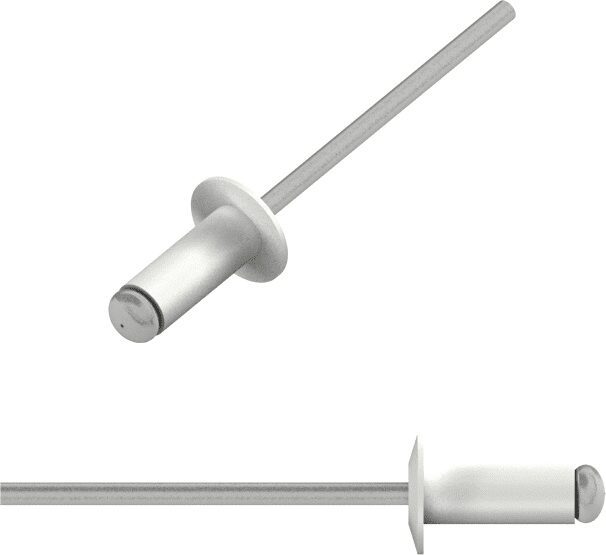 Заклепка вытяжная алюминий-сталь RAL 9003 STARFIX применяется для создания неразъемных соединений. Особенно подходит для крепления тонких листовых материалов между собой или к несущей конструкции. Тело заклепки изготовлено из алюминия, сердечник – из стали. Алюминиевая часть заклепки окрашена в цвет RAL. Для монтажа необходим заклепочный пистолет. Рекомендуется просверливать отверстие под заклепку на 0,1 – 0,2 мм больше, чем диаметр заклепки.