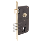 Замок врезной цилиндровый, без механизма секрета. Предназначен для установки в деревянные двери. Три цилиндрических стальных ригеля, диаметр 12мм. Вылет ригелей 20мм. Удаление ключевого отверстия 45мм. Межосевое расстояние 85мм. Цвет торцевой планки – латунь, ширина 22мм.