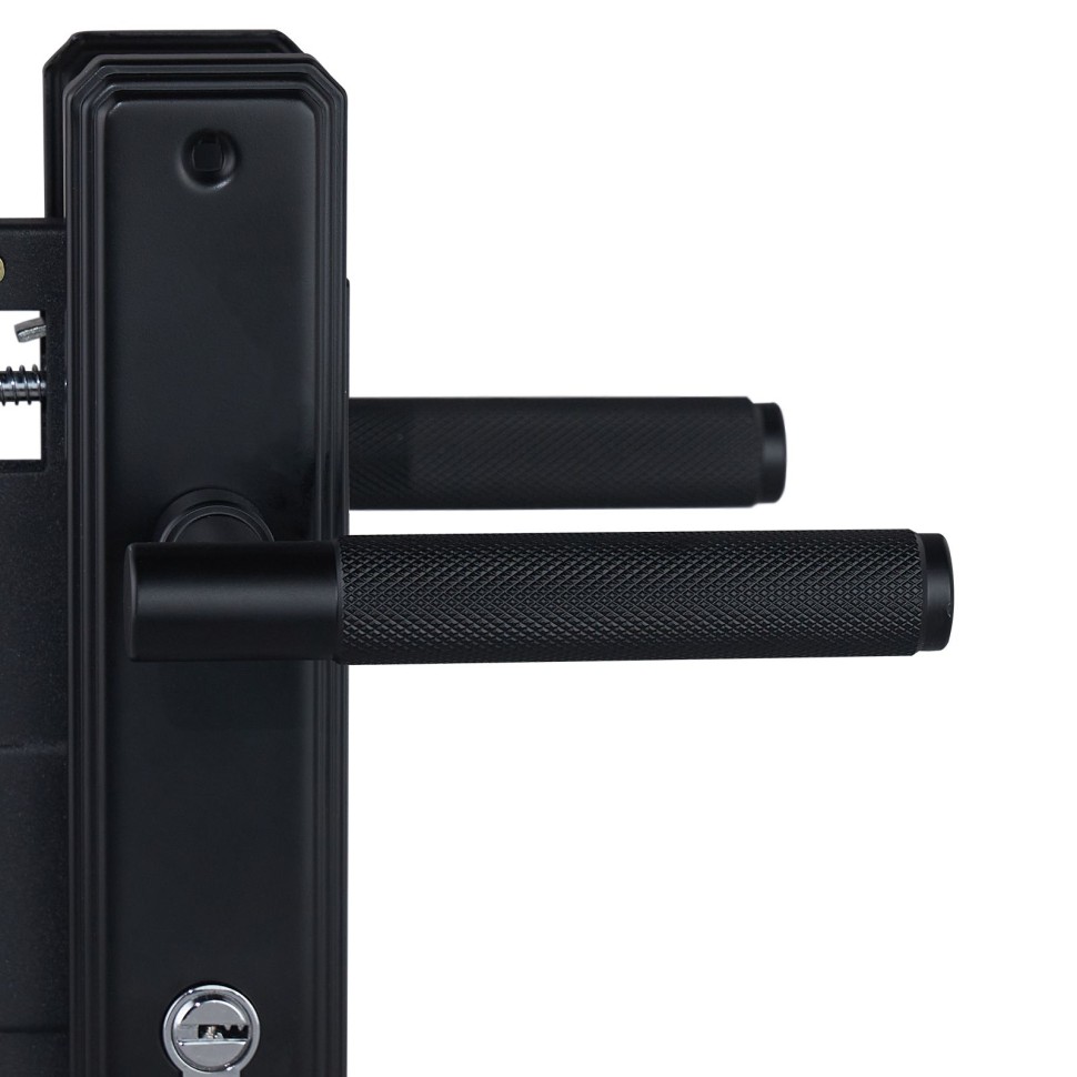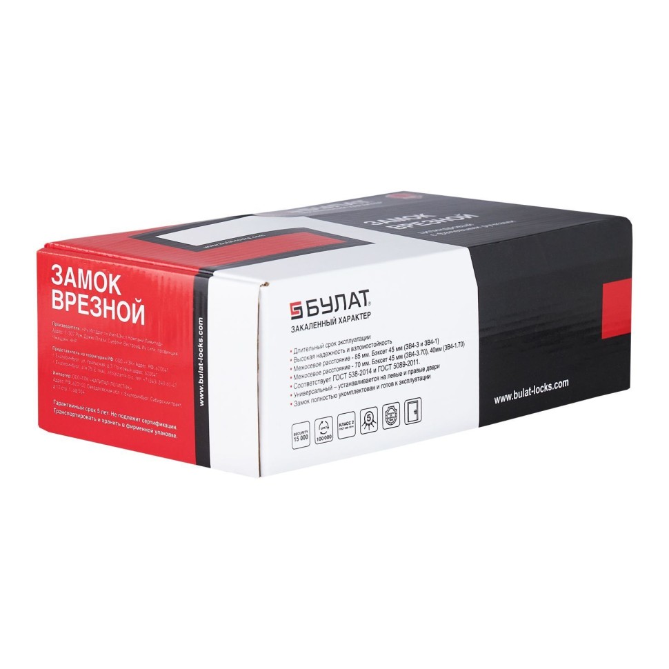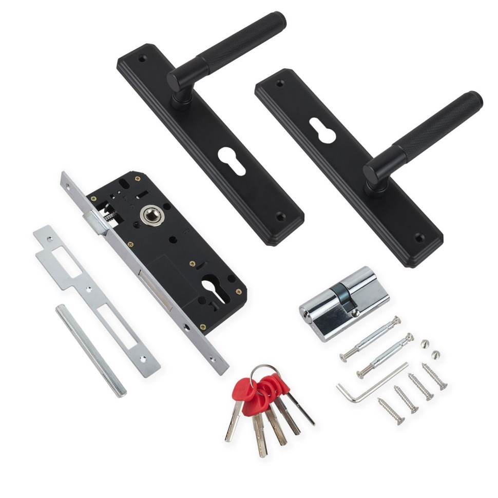 Замок врезной с ручкой БУЛАТ ЗВ4-1.70.02.02 ФЕРОНА черный 5 перф.кл. предназначен для установки в деревянные двери толщиной 35-38 мм, правого и левого открывания. Дверь может быть закрыта на защелку и открыта с помощью фалевой ручки при открытом засове замка. Один сплошной стальной ригель размером 38х10х20 мм. Универсальная защелка. Стальной корпус покрыт полимерной краской. Межосевое расстояние 70 мм. Удаление ключевого отверстия 40мм. Материал ручек – СТАЛЬ. Комплектация: латунный цилиндровый механизм 62мм, 5 перфоключей, ответная планка, винтовые стяжки.