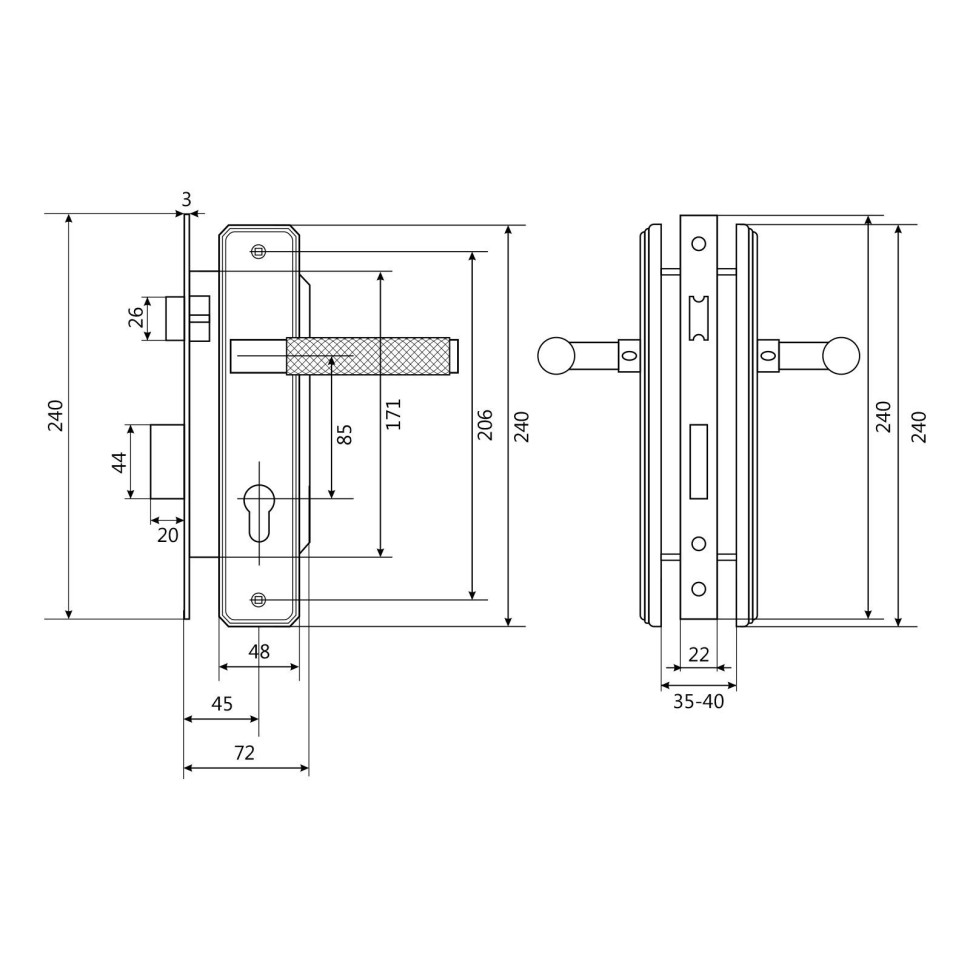 | Удаление ключевого отверстия (Backset) | 40 мм |