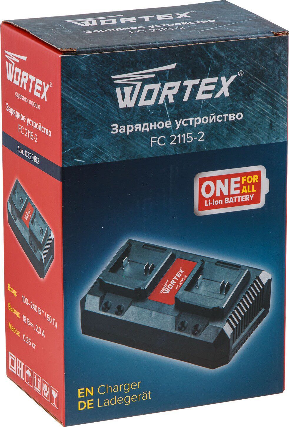 Зарядное устройство WORTEX FC 2115-2 ALL1 (0329182) используется для батарей линейки инструментов на одном аккумуляторе ONE FOR ALL. Наличие 2 слотов для зарядки аккумуляторов существенно экономит время.
