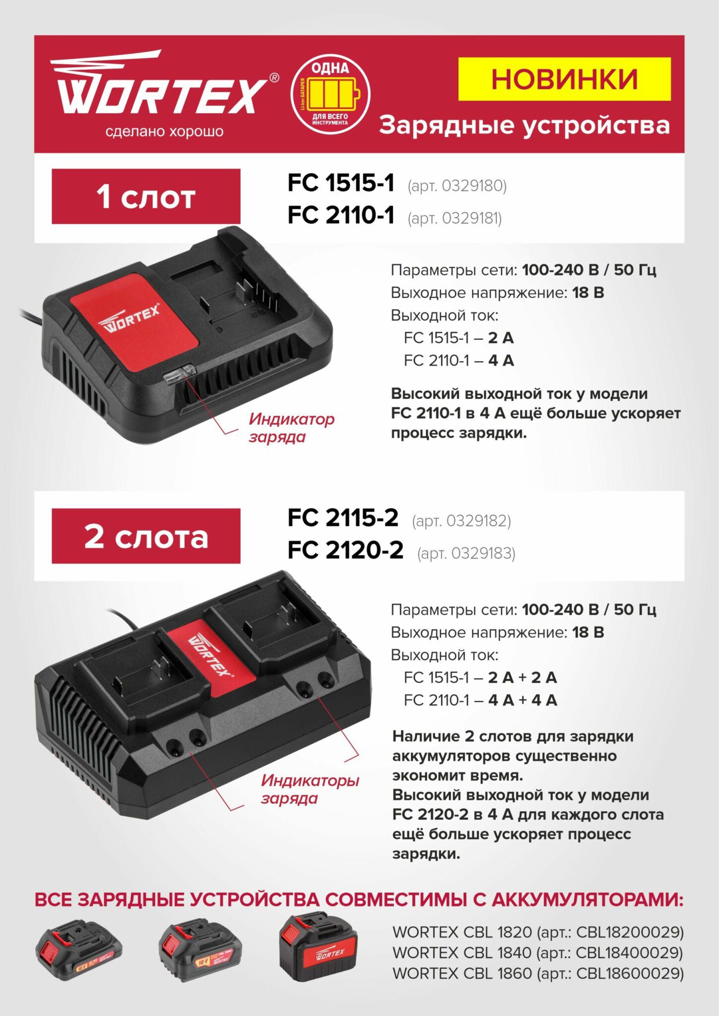 Зарядное устройство WORTEX FC 2120-2 ALL1 (0329183) купить в сети строительных магазинов Мастак