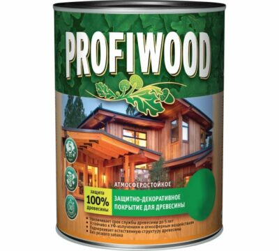 Защитно-декоративное покрытие PROFIWOOD орех 9 л / 8 кг предназначено для декоративной отделки и длительной защиты деревянных поверхностей от биопоражений. Новая формула со сниженным содержанием вредных веществ. Образует «дышащее» бархатисто-полуматовое покрытие. Подчеркивает природный рисунок древесины, тонирует под цвета ценных пород дерева.