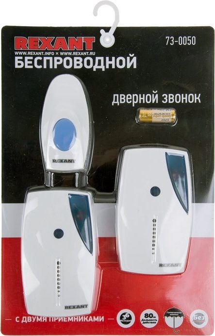 Звонок дверной беспроводной REXANT RX-5 (73-0050) – это простое и удобное решение для использования в квартире, на даче, в офисе. Дизайн звонка легко впишется в любой интерьер. Звонок легко устанавливается менее чем за 2 минуты. Наличие двух приемников позволит применять звонок как в большом здании, так и в загородном доме с двумя строениями.
