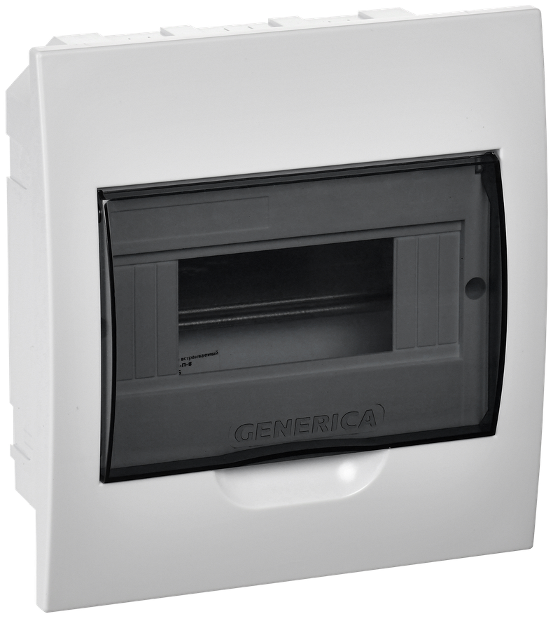 GENERICA Корпус пластиковый ЩРВ-П-8 черн. прозр. дверь IP41