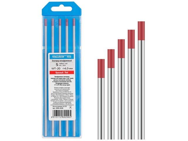 Электрод вольфрамовый красный WT-20, Ф 4,0 мм (набор 5 шт) SOLARIS