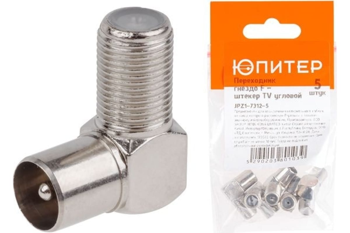 Переходник гнездо F – штекер TV угловой (5 шт.) ЮПИТЕР