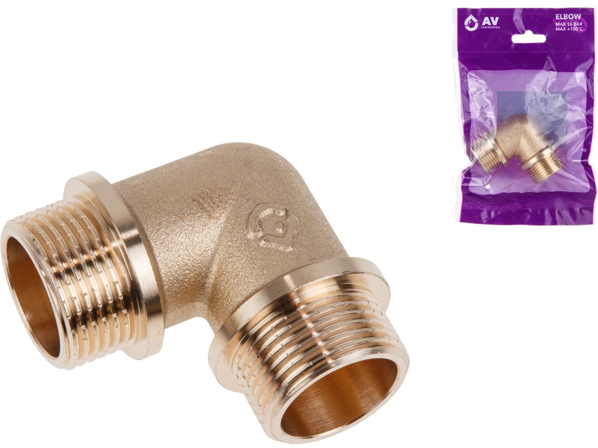 Колено 3/4″ нар.-нар. с ограничителем, AV Engineering (инд. упак.)