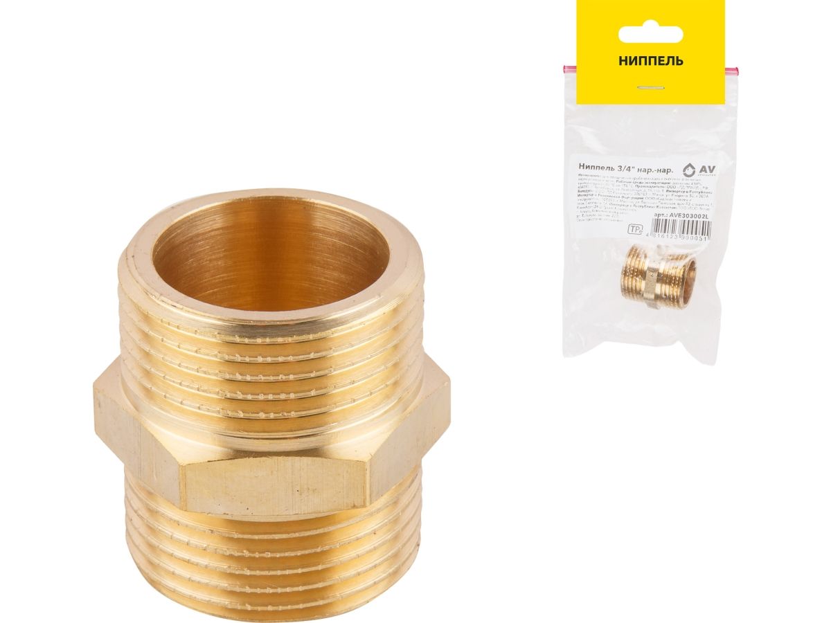 Ниппель 3/4″ нар.-нар., AV Engineering (инд. упак)