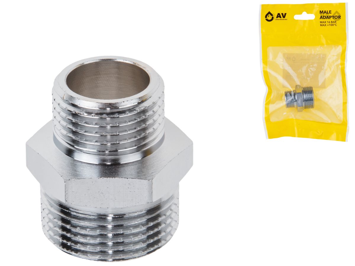 Ниппель редукционный наружная-наружная 3/4″ х 1/2″ ХРОМ, AV Engineering (инд. упак.)