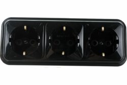 Розетка 3-ая (открытая, с/з) черная, Пралеска, Bylectrica