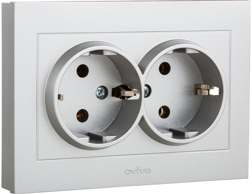 Ovivo, Grano, розетка 2-я с/з, серебро, 400-100300-907