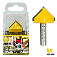 Фреза конусная по дереву 32х20×8 мм в пластиковой коробке GRAFF
