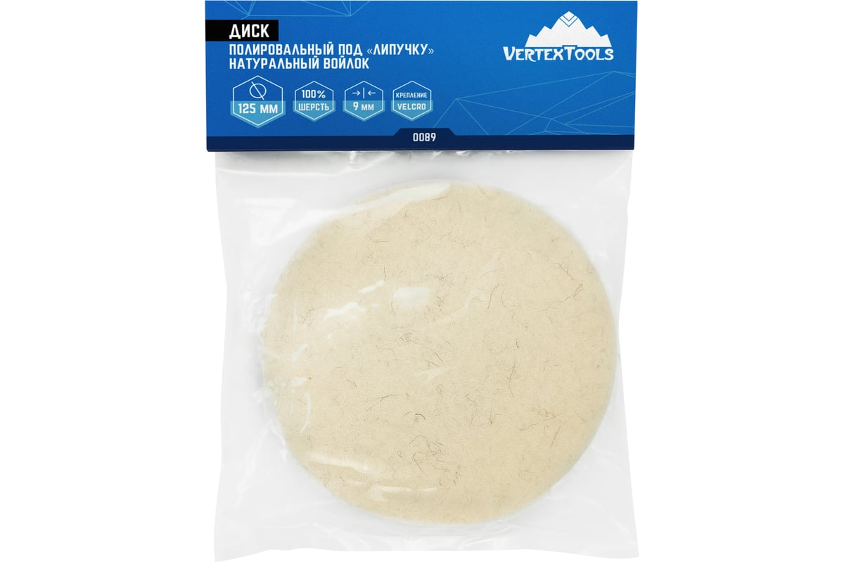 ДИСК ПОЛИРОВАЛЬНЫЙ ИЗ НАТУРАЛЬНОГО ВОЙЛОКА “ПОД ЛИПУЧКУ” 125 Х 9 мм
