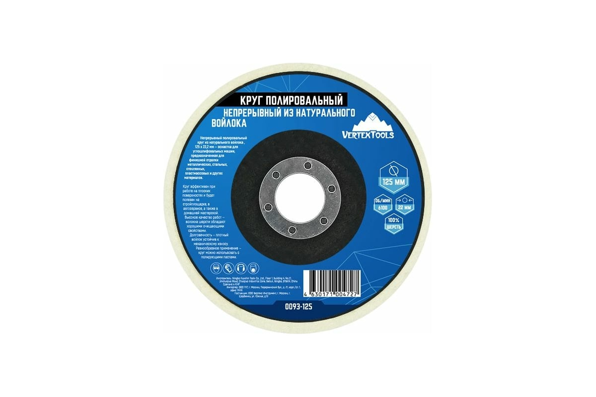 КРУГ ПОЛИРОВАЛЬНЫЙ НЕПРЕРЫВНЫЙ ИЗ НАТУРАЛЬНОГО ВОЙЛОКА 125х22,2