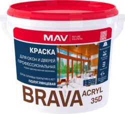 Краска BRAVA ACRYL 35D для окон и дверей профессиональная (ВД-АК-1035д) база TR белая п/мат 1л (0,9кг)
