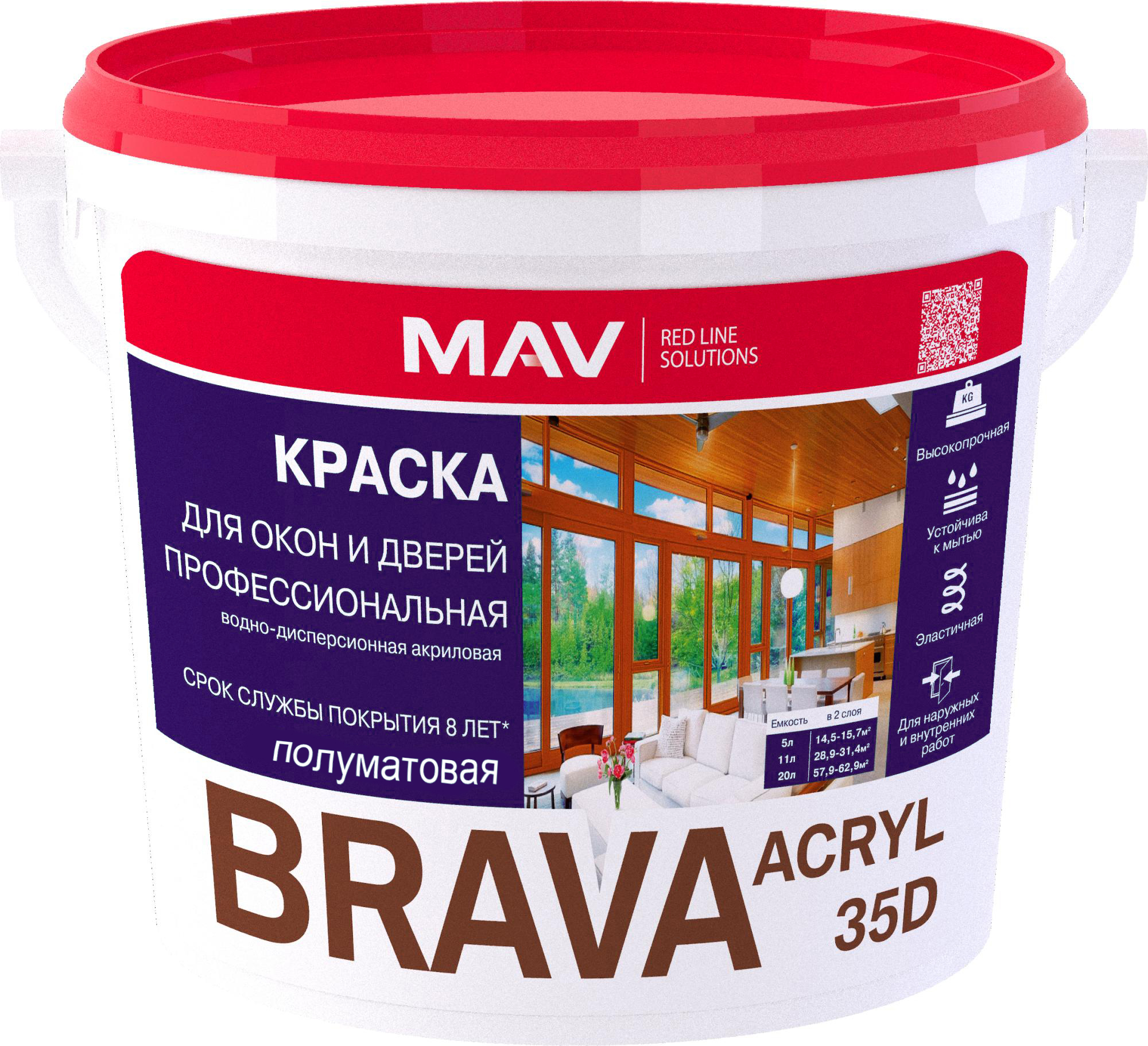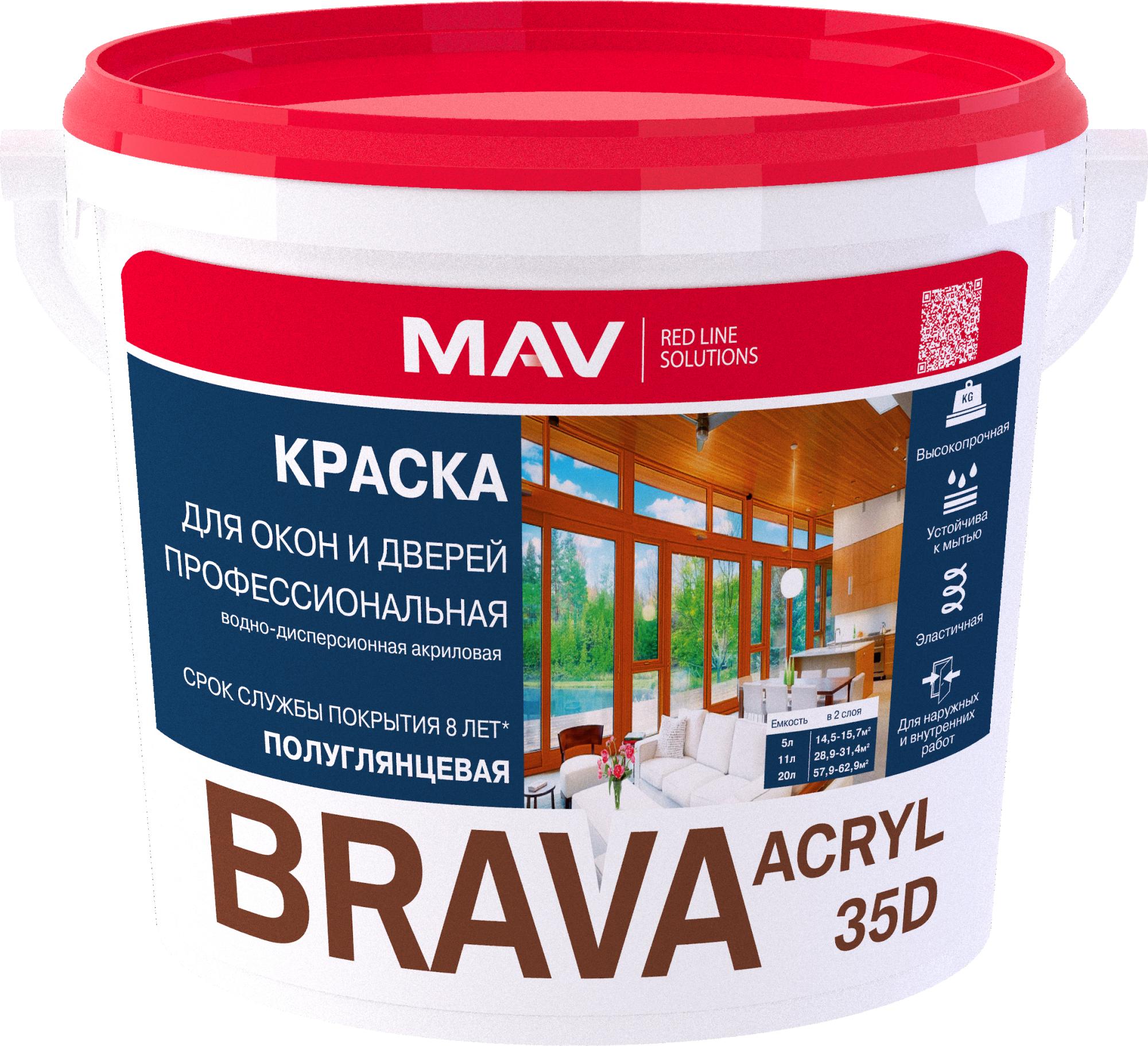 Краска BRAVA ACRYL 35D для окон и дверей профессиональная (ВД-АК-1035д) база D п/гл 1л (1кг)