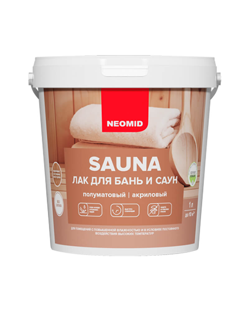 Неомид SAUNA (1 л.) – лак для бань и саун акриловый