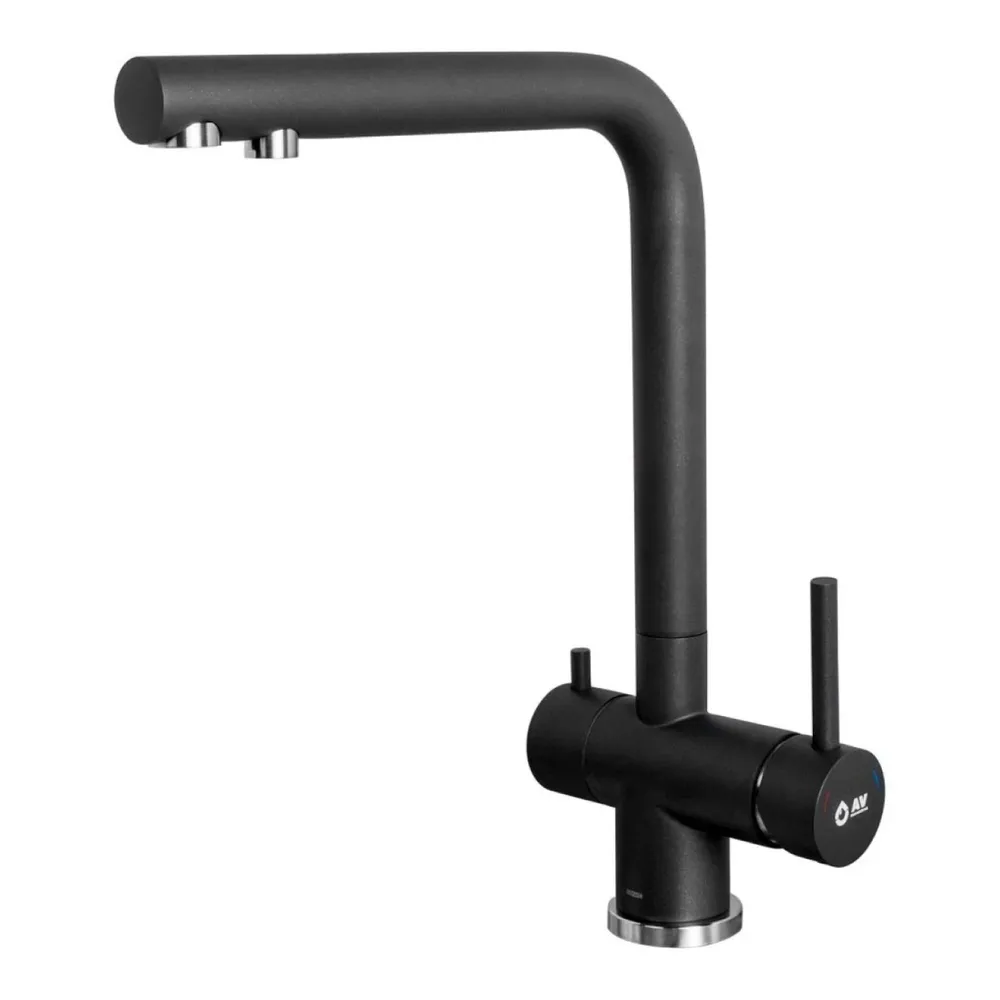 Смеситель для кухни (SUS 304) D35, серия ZAR с краном для пит. воды черный AV Engineering